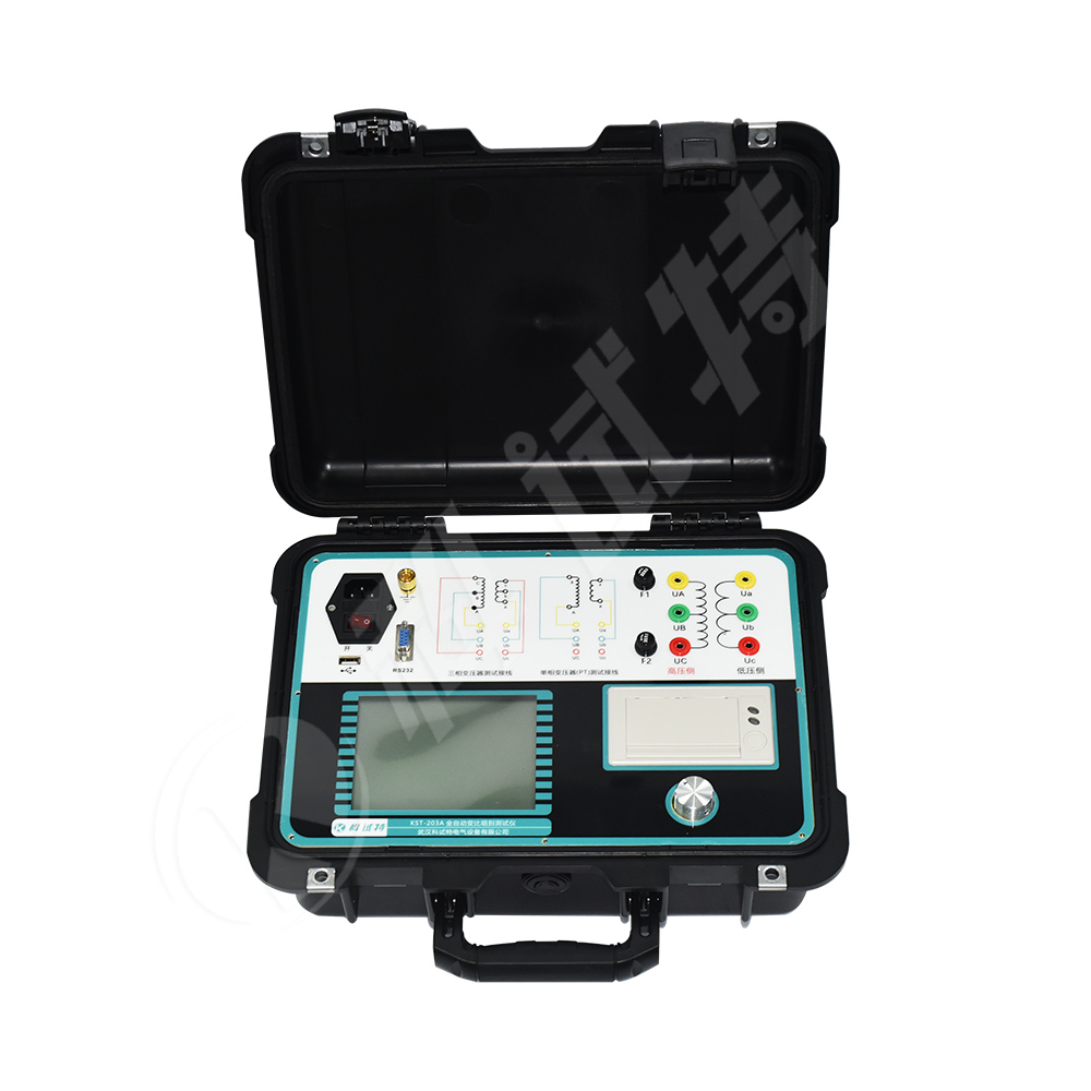 KST-203A全自动变比组别测试仪主要用于监督变压器产品出厂及使用过程中的质量,防止变压器匝间短路,开路,连接错误,调压开关内部故障或接触故障。仪器操作简便,功能完备,数据稳定可靠,测试速度快,适应各种大中小型变压器变比测试的需要,是电力工业部门的理想测试仪器。