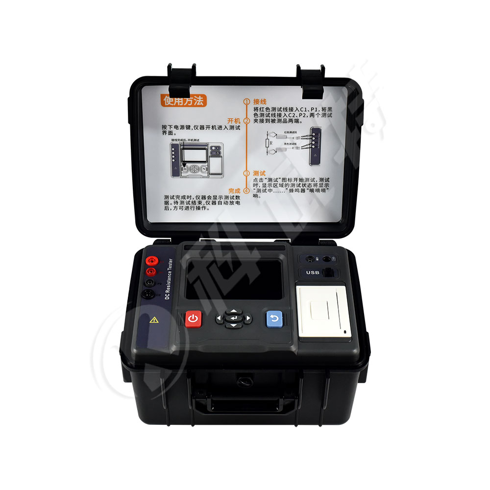 直流电阻测试仪由主机、监控软件、测试线、通讯线等组成。主机具有充电功能无需现场找电、全彩大屏LCD显示,一目了然,触屏操作方便易用,端口防过载功能。大容量存储800组数据。上位机软件具有历史数据读取、查阅、保存等功能。