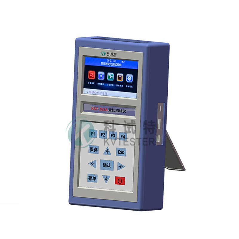 KST-263手持式变比测试仪采用真彩色液晶显示器,全中文图形化操作界面并配有汉字提示信息、多参量显示的液晶显示界面,人机对话界面友好。全触摸式导电硅胶键盘操作方式,操作手感好,简便易学。仪器内置大容量掉电不丢失数据存储器,可将现场校验数据保存下来,最多可扩展存储1000组现场校验结果,可提供后台微机管理软件,通过U盘将结果转存至计算机,生产报表、实现微机化管理。仪器采用本公司独立设计开模制造的工程塑料外壳,仪表外形美观、实用。现场测试操作方便。