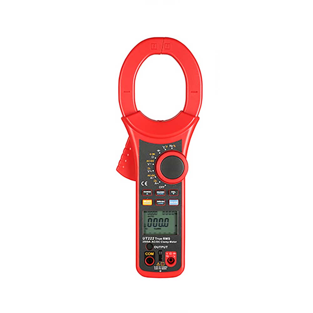 UT222是一款适合测量*电流(2500A)的数字钳形万用表。较大的钳头(63mm)开口尺寸可以轻松应对强电流、高电压场合中常见的粗导线。该系列产品可选功能有真有效值、浪涌电流,低通滤波,数据储存,电流输出功能,AC+DC电流/电压等。并且符合双重绝缘和CATIV 600V的安全等级认证,在冲击保护有更大提高,使之成为一款性能优越且安全耐用的多功能钳形表。适合工业电力系统应用,是电力技术人员维修、维护的理想工具。