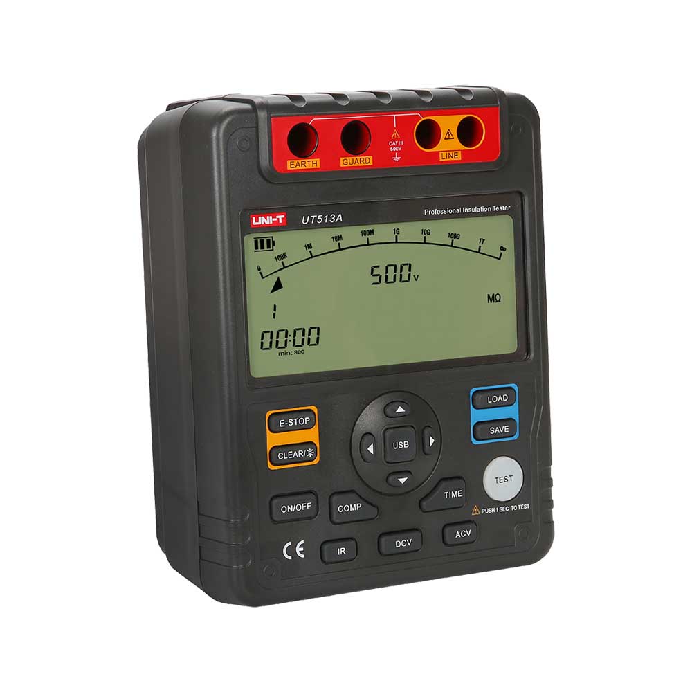 UT513A是一款智能微型仪器即绝缘电阻测试仪器。可快速完成电机相关(大容量变压器、互感器、发电机、高压电动机、电缆、避雷器)的绝缘诊断操作。该系列绝缘电阻测试仪具有PI(极化指数)、DRA(吸收比)测量和强大数据处理软件,完成绝缘电阻测量参数记录分析并以此数据来判定绝缘状况的优劣。适用于现场电力设备以及供电线路的测量和检修的用户。