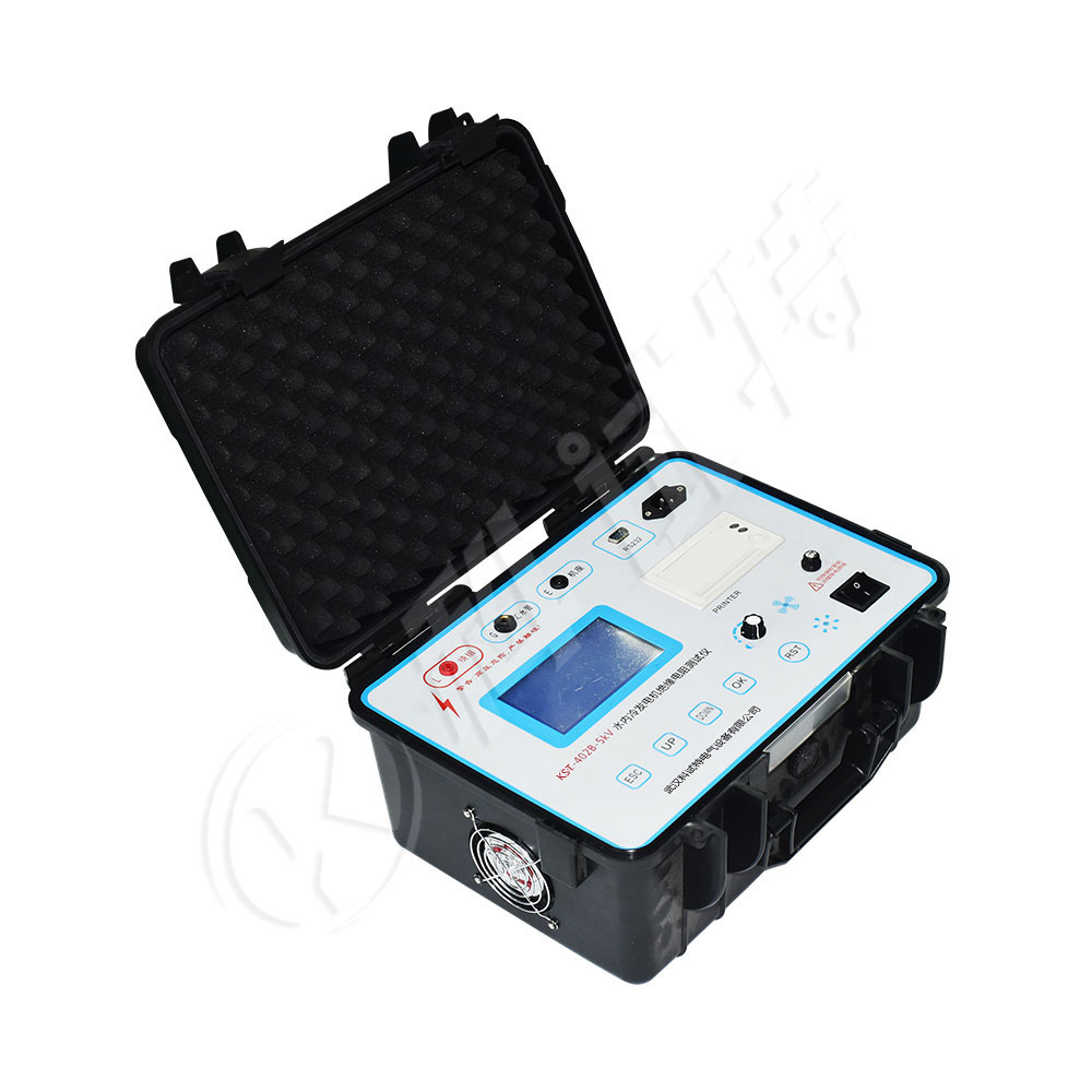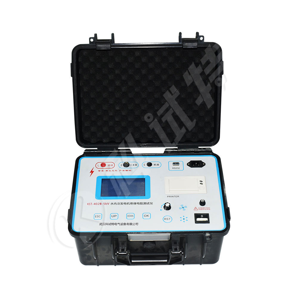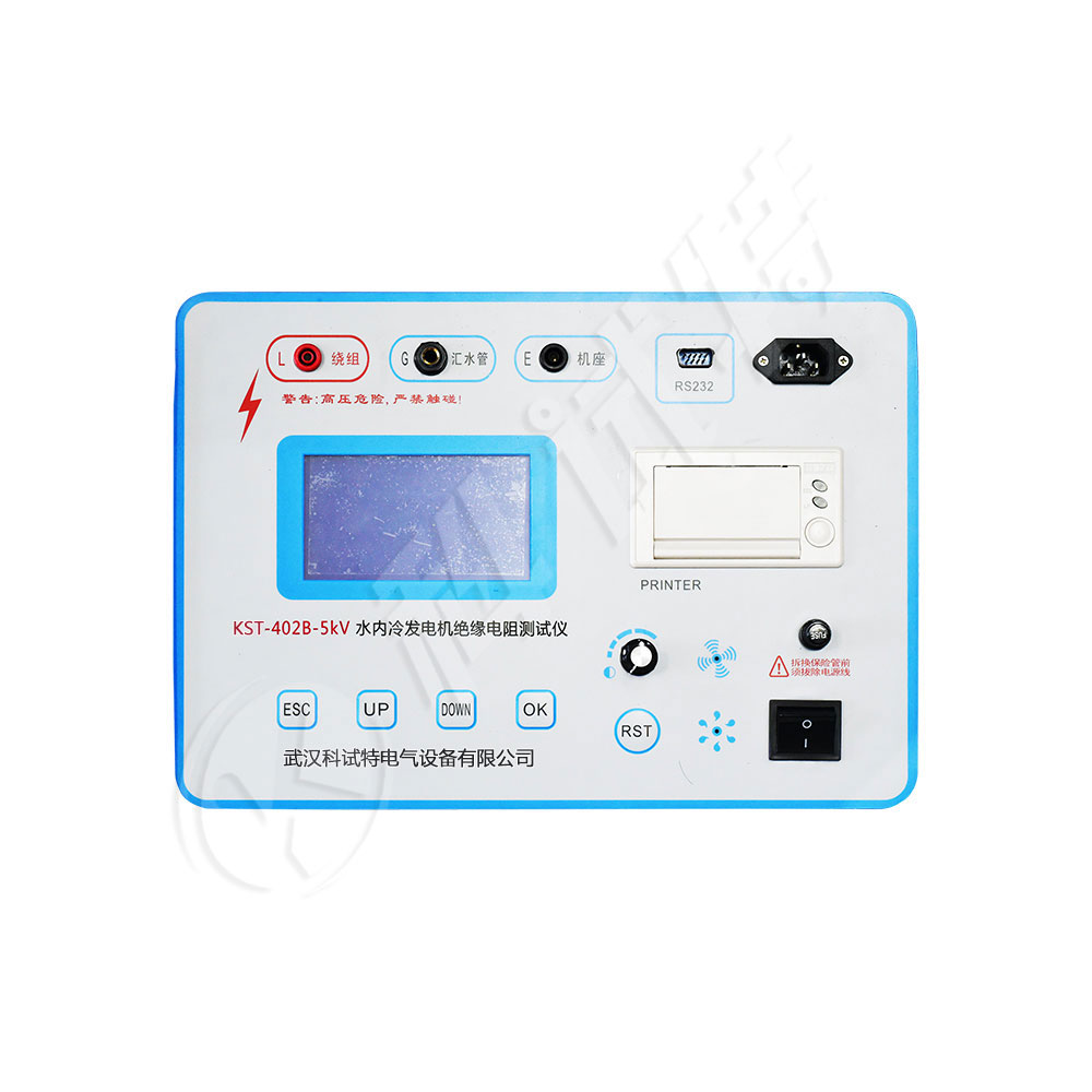 KST-402B水内冷发电机绝缘电阻测试仪用于测量水内冷发电机定子绕组的绝缘性能,同类产品中KST-402 水内冷发电机绝缘电阻测试仪*具有自动补偿并消除水的极化电势对测量结果的影响的功能,从根本上克服了其他同类产品的缺陷。也就是说即使是所谓的汇水管带电,本仪器也能保证测量结果的真实性、准确性。带载能力强,输出额定负高压2500V,短路电流约40mA;负载70kΩ时,压降<10%,与同类产品比较,自动化程度*。除了能准确测量绝缘性能外,本仪器能自动测量温度、湿度、时间;自动计算吸收比、极化指数;能存储每次测量结果;自带打印机;能与计算机通信。