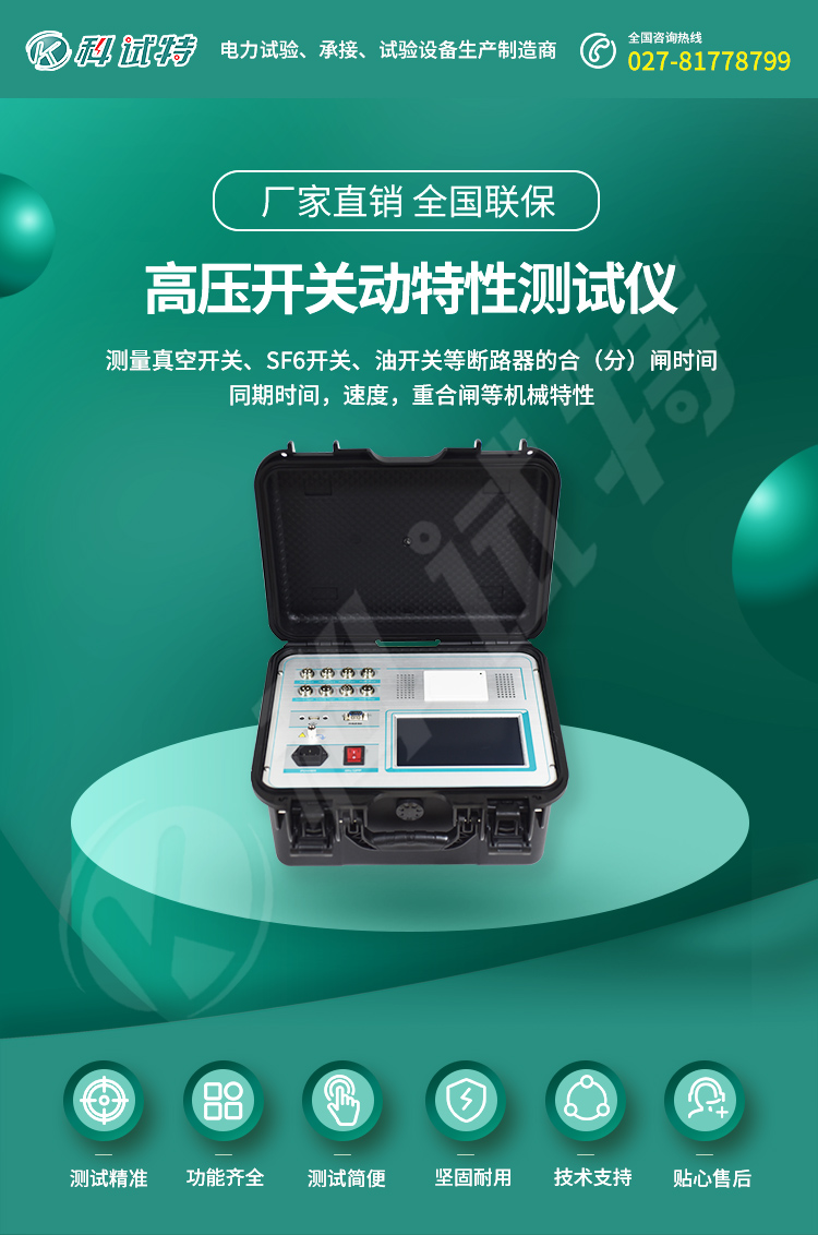 随着社会的发展,人们对用电的安全可靠性要求越来越高,高压断路器在电力系统中担负着控制和保护的双重任务,其性能的优劣直接关系到电力系统的安全运行。机械特性参数是判断断路器性能的重要参数之一。KST-300B高压开关动特性测试仪是依据*的《高压交流断路器》GB1984-2003为设计蓝本,参照中华人民共和国电力行业标准《高电压测试设备通用技术条件》第3部分,DL/T846.3-2004为设计依据,为进行各类断路器动态分析提供了方便,能够准确地测量出各种电压等级的少油、多油、真空、六氟化硫等高压断路器的机械动特性参数。高压断路器在电力系统中担负着控制和保护的双重任务,其性能的优劣直接关系到电力系统的安全运行。机械特性参数是判断断路器性能的重要参数之一。