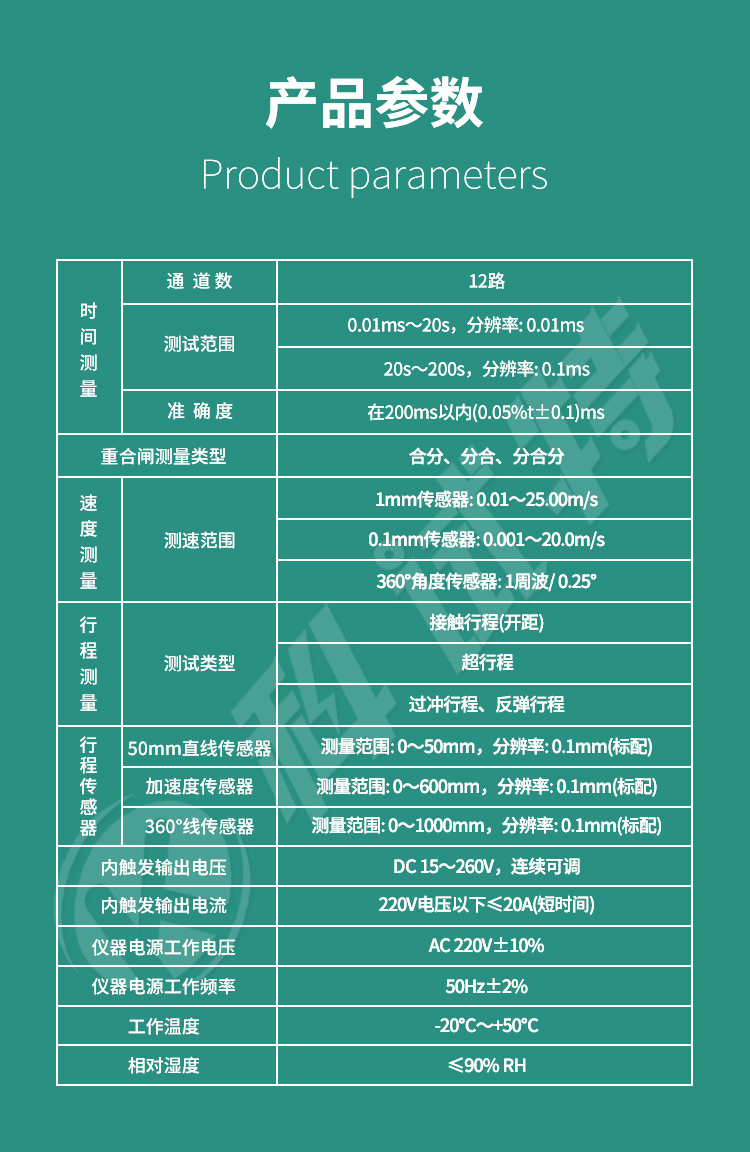 9、同时可测12路金属触头断口、6路主断口和6路辅助断口、6路合闸电阻。