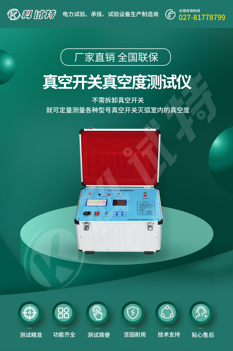 | 测试用途 | 测量各种型号真空开关灭弧室内的真空度 | |
