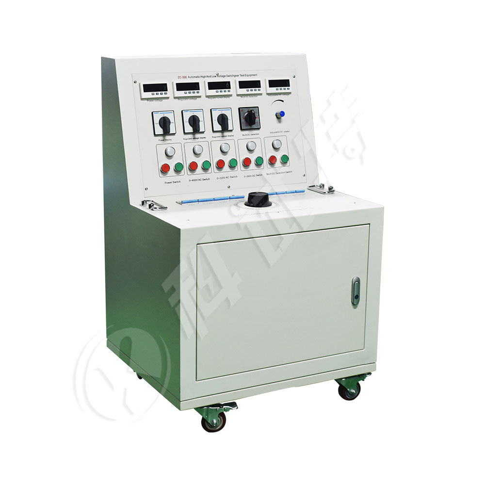 KST-330高低压开关柜通电试验台用于高低压开关柜生产厂家对所生产的高低压开关柜进行出厂前的各项通电试验。高低压开关柜通电试验台能提供各种交、直流电源,便于对开关柜的检测,提高工作效率。