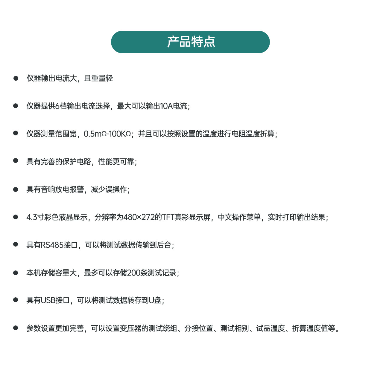 1、仪器输出电流大,且重量轻;
