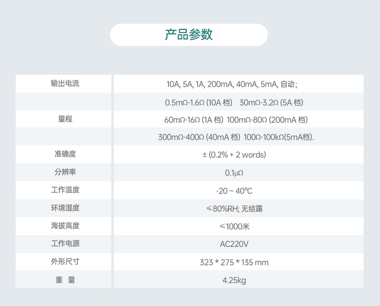 | 分辨率 | 0.1μΩ |