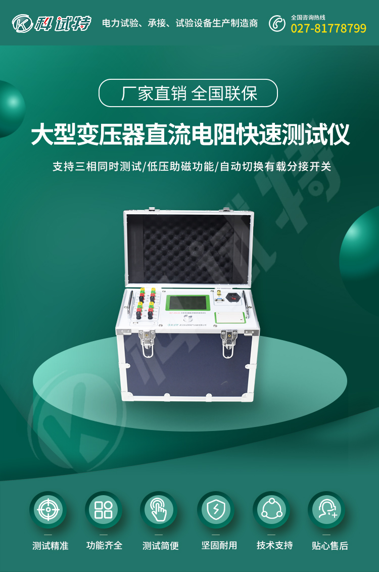 1、三相恒流源输出,可同时测试三相直阻;测试低压绕组时,在高压绕组注入助磁电流,可让变压器铁芯快速饱和,使测试速度大大提高。