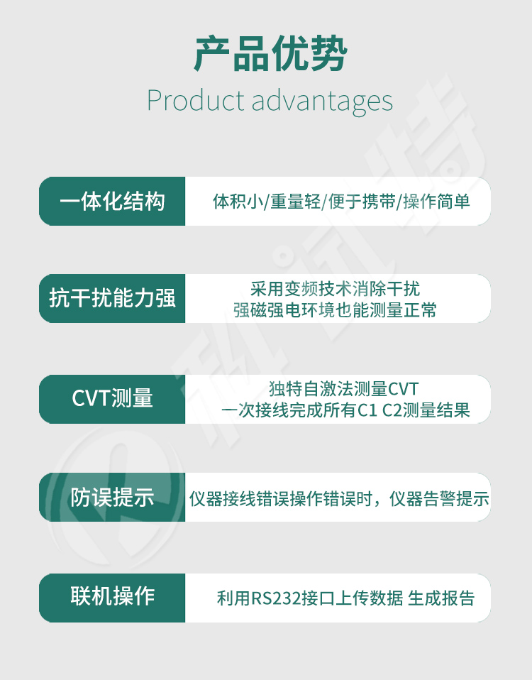 2、仪器采用了变频技术来消除现场50Hz工频干扰,即使在强电磁干扰的环境下也能测得可靠的数据。