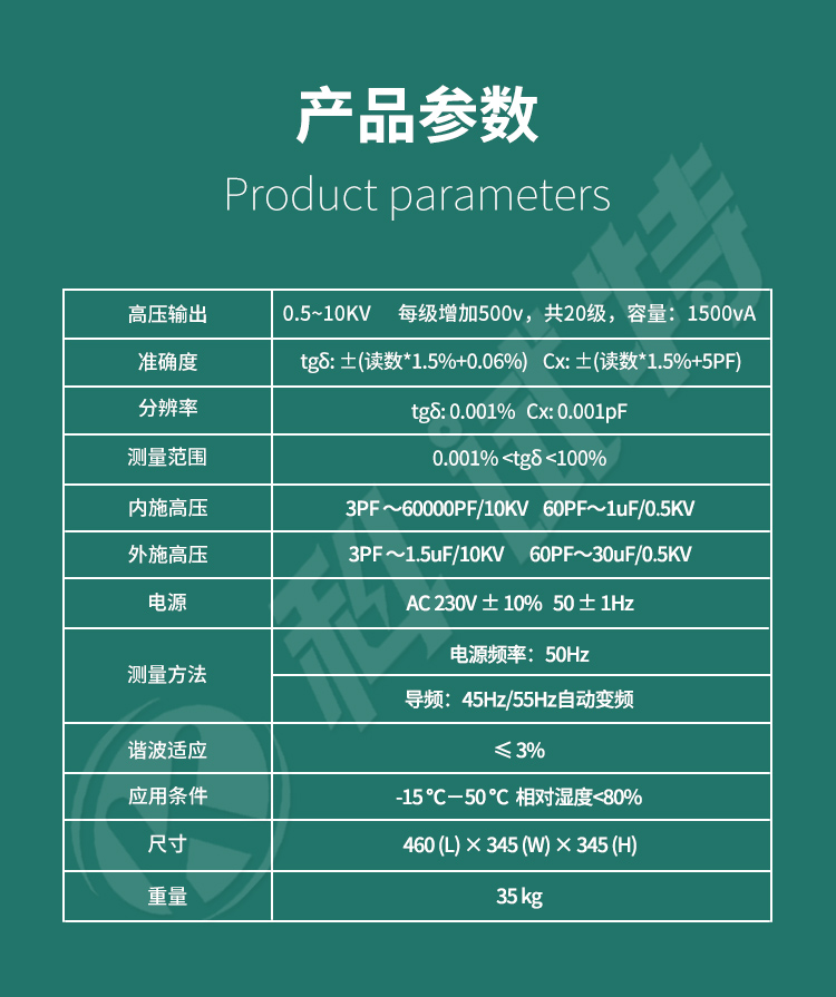 10、具有测量高电压介损功能,能够使用高压变压器或串联谐振进行超过10kV电压的介损试验。