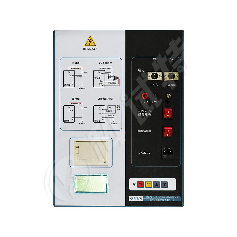 KST-221全自动抗干扰介质损耗测试仪是发电厂、变电站等现场全自动测量各种高压电力设备介损正切值及电容量的高精度仪器。由于采用了变频技术能保证在强电场干扰下准确测量。仪器采用中文菜单操作,微机自动完成全过程的测量。