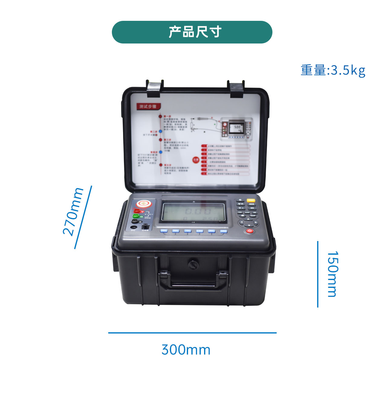 3、有50V、100V、250 V、500V、1.0kV、2.5kV、5.0kV共7个电压输出档。