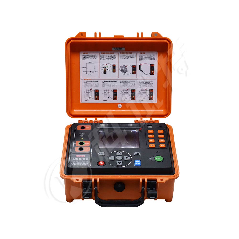 对绝缘电阻进行测试是判断电气设备或绝缘材料的绝缘是否合格的一种定性测试,仪表测量结果下的各个参数代表了电气设备或绝缘材料绝缘的有效性。适用于测量各种绝缘材料的电阻值,如套管绝缘、变压器绝缘、电动机或发电机绝缘、电缆及电器设备等的绝缘电阻,其中测试得出的极化指数和吸收比可以用来判断被测设备的绝缘受潮情况。