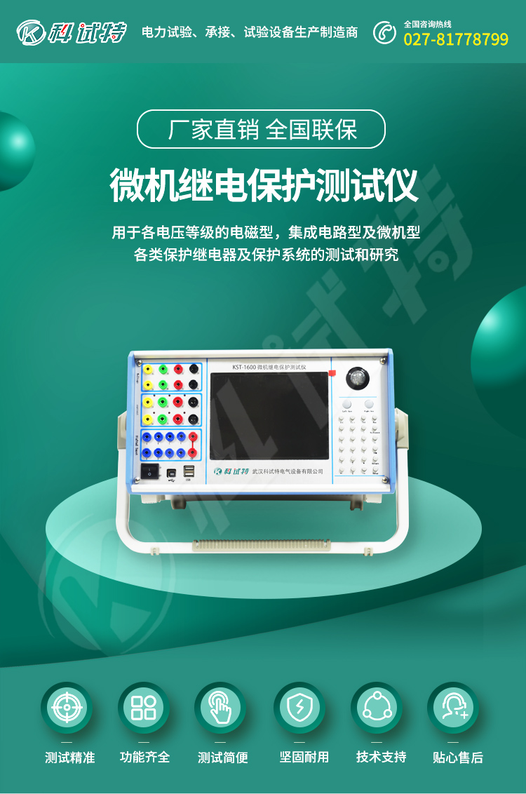 KST-1600微机继电保护测试仪是保证电力系统安全可靠运行的一种重要测试工具。随着计算机技术、微电子技术、电力电子技术的飞速发展,应用*技术成果不断推出新型高性能继电保护测试装置是技术进步的必然趋势。KST-1600微机继电保护测试仪参照了原电力部颁发的《微机继电保护试验装置技术条件》的基础上,认真总结前几代产品的开发、生产经验,并采用现代*数字技术、高精密电子器件、微机系统及新线路、新结构研制而出。可独立完成微机保护、继电保护、励磁、计量、故障录波等专业领域内的装置测试,广泛应用于电力、石化、冶金、铁路、航空、军事等行业的科研、生产和电气试验现场。