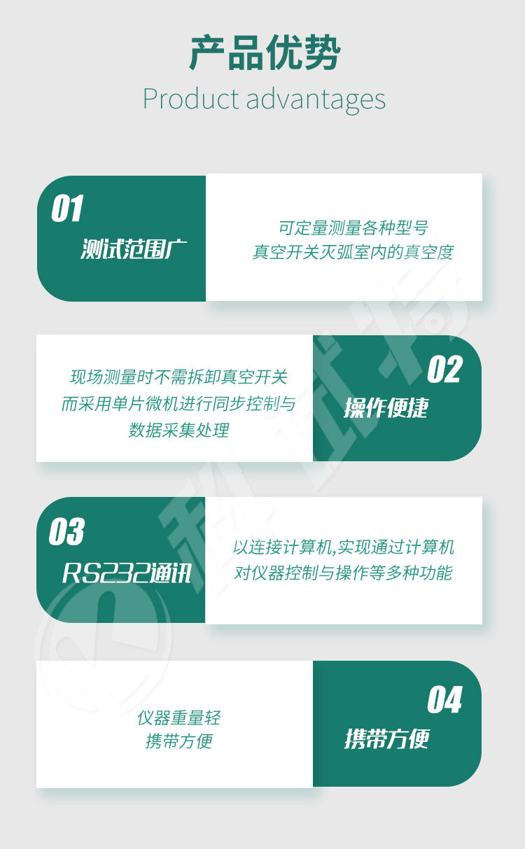 | 测试用途 | 测量各种型号真空开关灭弧室内的真空度 | |