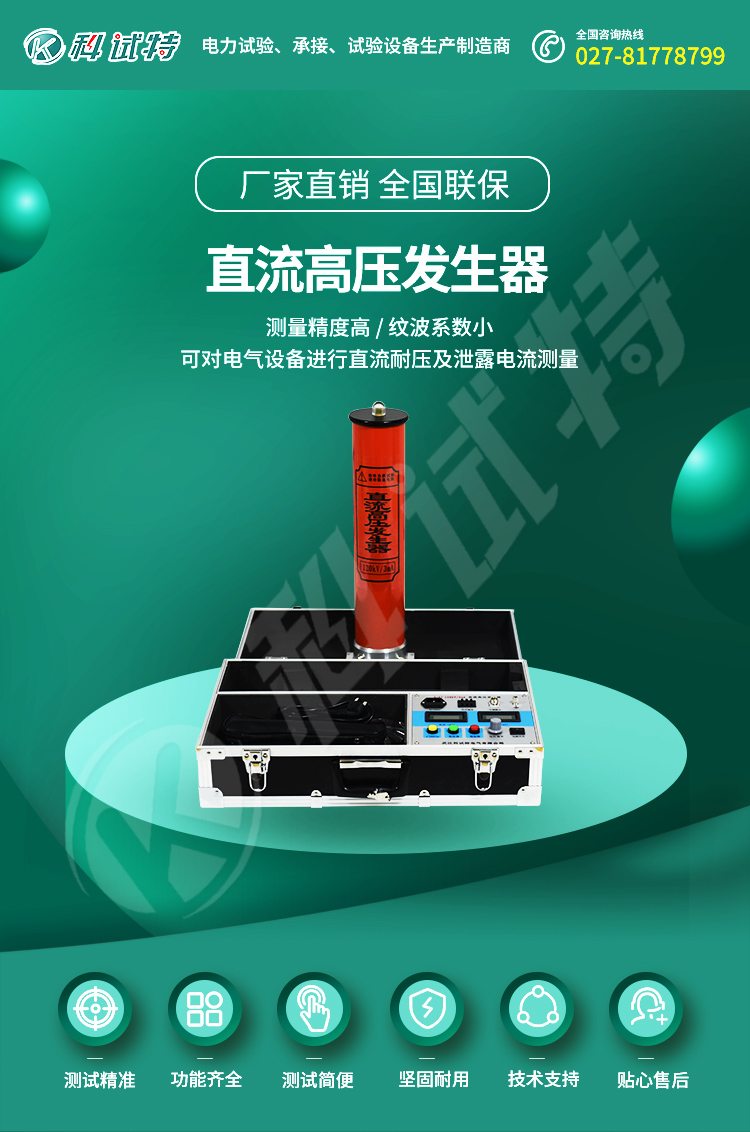 KST-540系列直流高压发生器是根据新的中国电力行业标准DL/T848.1-2004《直流高压发生器通用技术条件》设计制造的新一代便携式直流高压试验器。主要适用于电力部门、厂矿企业动力部门、科研单位、铁路、化工、发电厂等对氧化锌避雷器、磁吹避雷器、电力电缆、发电机、变压器、开关等高压电气设备进行直流耐压试验。KST-540系列直流高压发生器采用中频倍压电路,PWM中频脉宽调制技术,使电压稳定度大幅度提高。根据电磁兼容性理论,采用特殊屏蔽、隔离和接地等措施,使直流高压发生器在额定电压下放电而不损坏仪器。