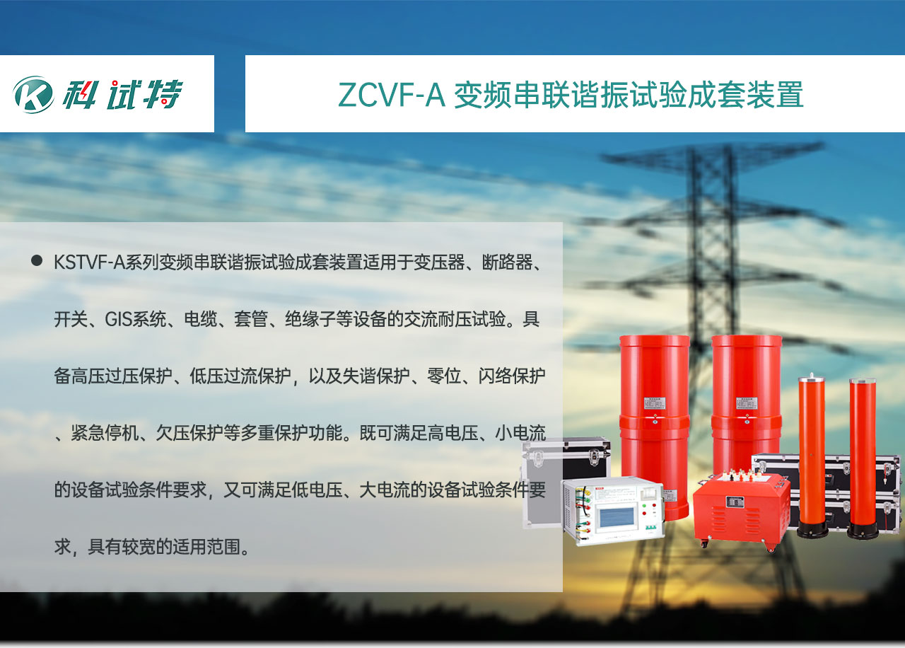 KSTVF-A变频串联谐振试验成套装置适用于变压器、断路器、开关、GIS系统、电缆、套管、绝缘子等设备的交流耐压试验。具备高压过压保护、低压过流保护,以及失谐保护、零位、闪络保护、紧急停机、欠压保护等多重保护功能。